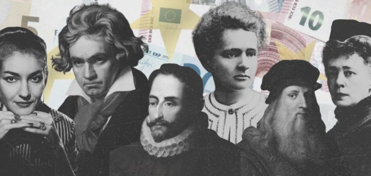 На банкнотах могут появиться реальные исторические фигуры, а также сцены из повседневной жизни. Согласно предложению, на €10 будет изображен Людвиг ван, на €20 — Мария Кюри, на €5 — Мария Каллас, на €50 — Мигель де Сервантес, на €100 — Леонардо да Винчи, а на €200 — Берта фон Зутнер.