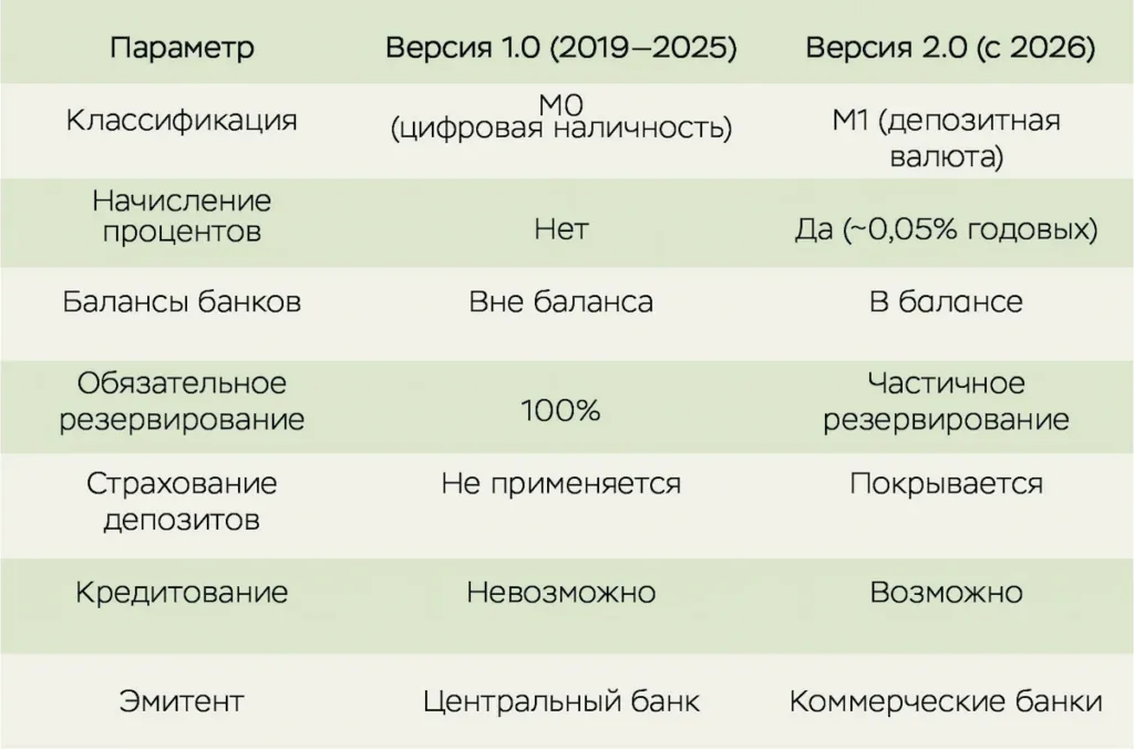 1 января 2026 г. Китай официально запустил новую версию цифрового юаня (e-CNY), ознаменовав фундаментальный переход от модели цифровых наличных (версия 1.0) к модели цифровой депозитной валюты (версия 2.0). Народный банк Китая (НБК) авторизовал десять крупных коммерческих учреждений, включая WeBank (Tencent) и MYbank (Alibaba), начислять проценты на балансы цифровых юаней по годовой ставке примерно 0,05%. Это решение делает Китай первой крупной мировой экономикой, позиционирующей свою ЦВЦБ как средство сбережения. Данная трансформация имеет глубокие последствия для глобальной финансовой системы, международной конкуренции цифровых валют и будущего денег.